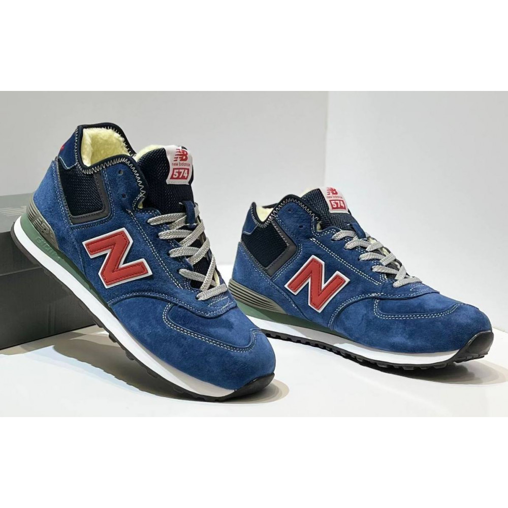 • New Balance 574 Mid Blue Navy Red Suede с мехом