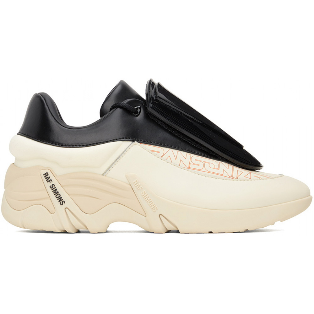 Raf Simons Antei Chunk Black Cream — это диалог противоположностей, воплощенный в обуви. Контраст глубокого черного и мягкого кремового создает визуальную глубину, а лаковая съемная панель превращает модель в конструктор личного стиля. Матовая основа излучает сдержанность, но стоит добавить глянцевую накладку — и кроссовки обретают провокационный, почти скульптурный характер.