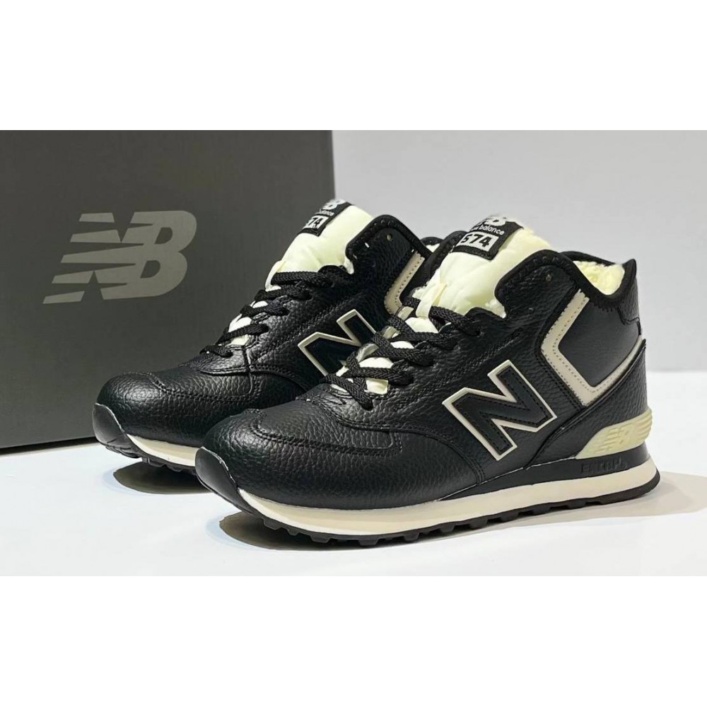 • New Balance 574 Mid Leather Black White с мехом