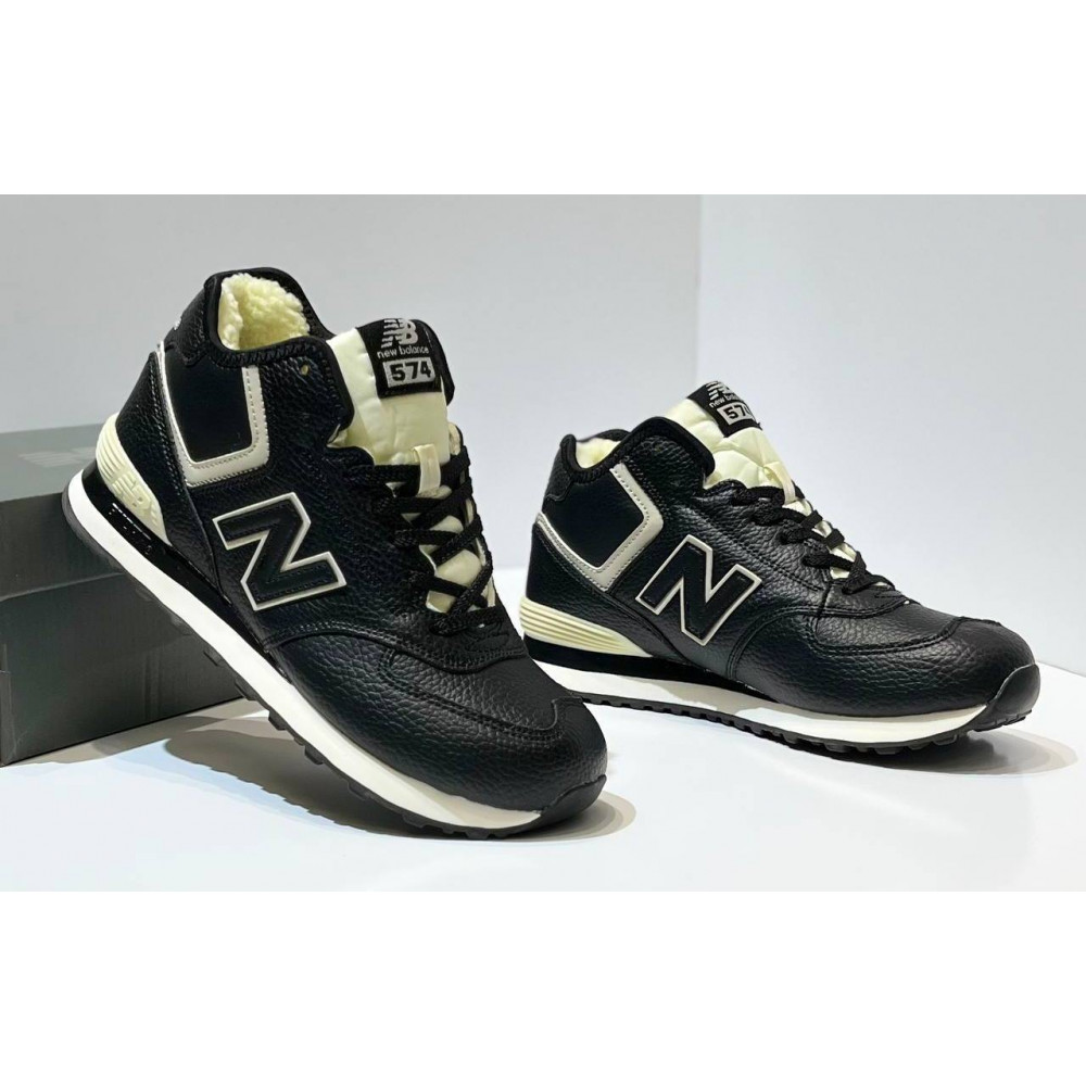 New Balance 574 Mid Leather Black White с мехом